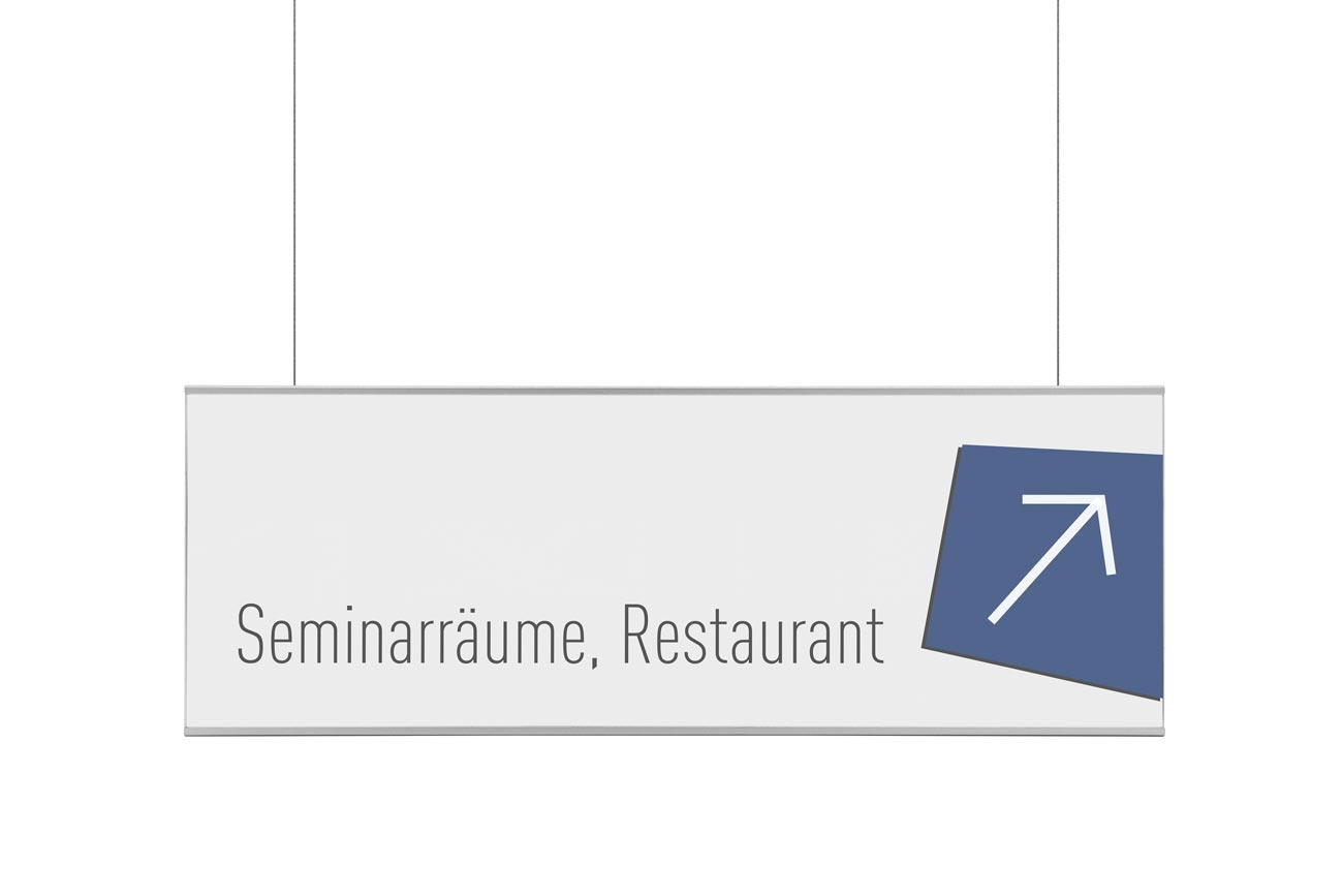 Unsere robusten Hängeschilder aus Aluminium sind als Wegweiser und auf Werbeflächen gleichwertig einsetzbar. Einseitige oder beidseitige Beschriftungsmöglichkeiten bieten maximale Informationspräsentation. Jederzeit austauschbare Texteinleger ermöglichen nicht nur volle Gestaltungsfreiheiten, sondern auch Aktualität. So können Sie Ihren Kunden und Mitarbeitern immer die neuesten Informationen und Veränderungen übermitteln.