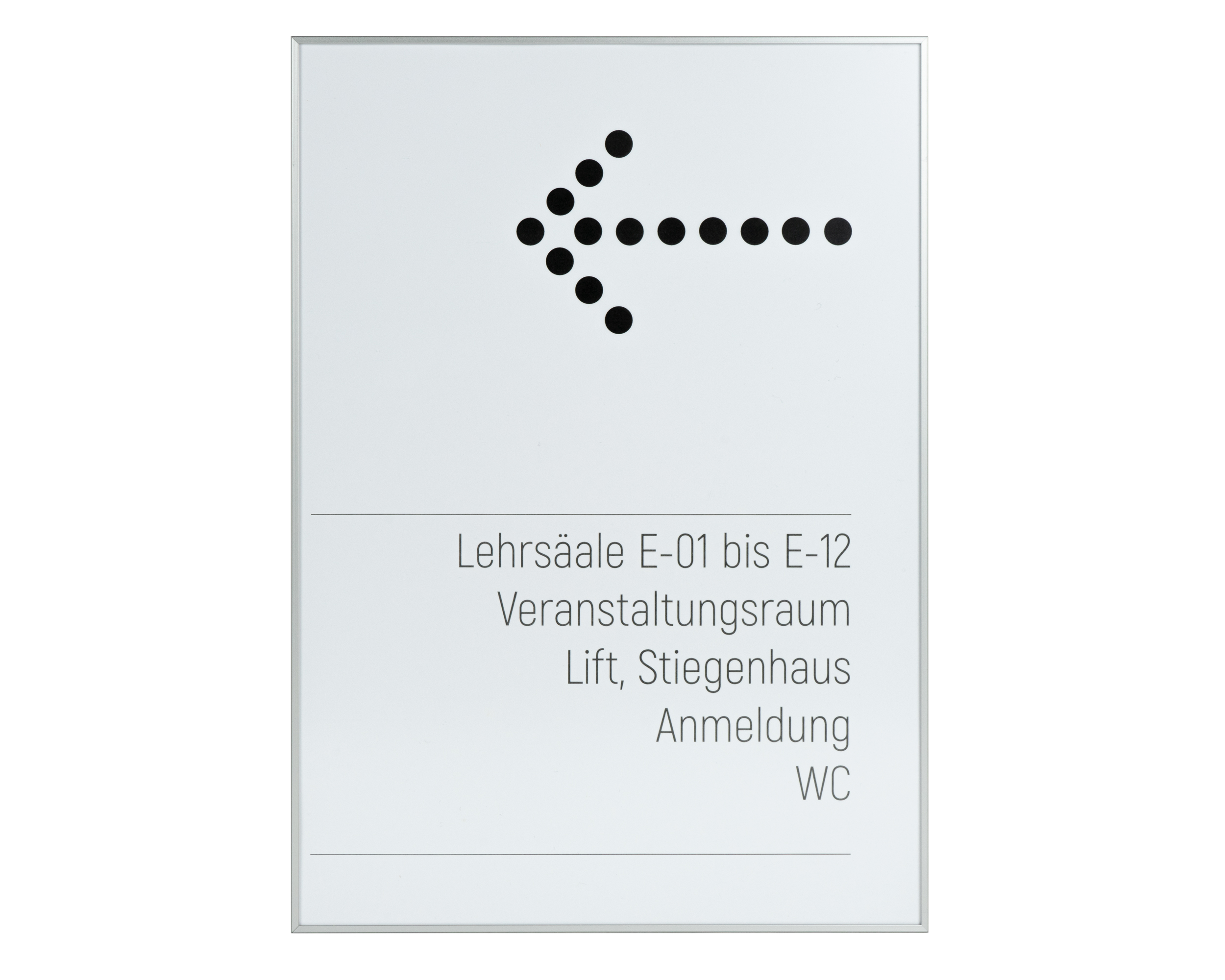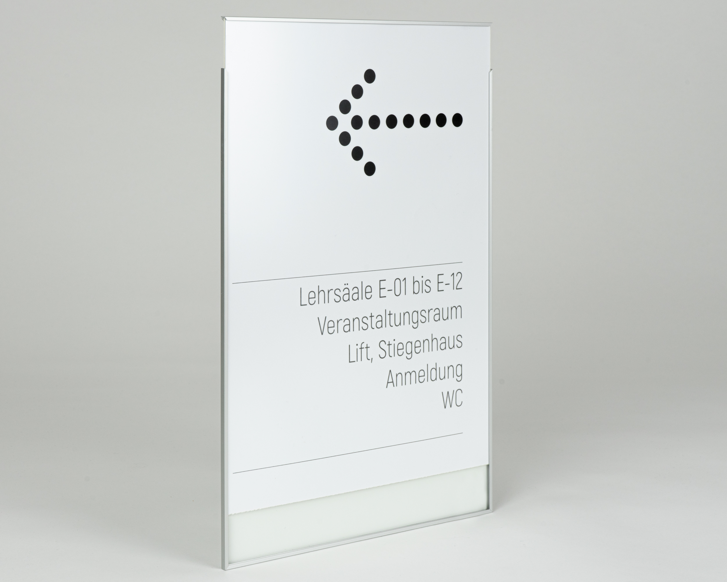 Bei Infoschildern mit Profilrahmen umgeben feine Aluminiumrahmen die selbstbeschrifteten Texteinleger und setzten diese gekonnt in Szene. Die Texteinleger können jederzeit und ganz einfach (mittels Haftsauger) ausgetauscht werden. Einer unserer Bestseller, der Infoschilder FORMOeinschub besticht durch seinen werkzeuglosen Textwechsel, und ist besonders beliebt in Bereichen, wo ein ständiger Texteinlegerwechsel stattfindet. Die unterschiedlichen Montagearten ermöglichen ein einfaches und schnelles Anbringen der Schilder an jeder Wand. Die Wechselrahmen werden mit Acryl oder Axpet als Scheibe bestückt.